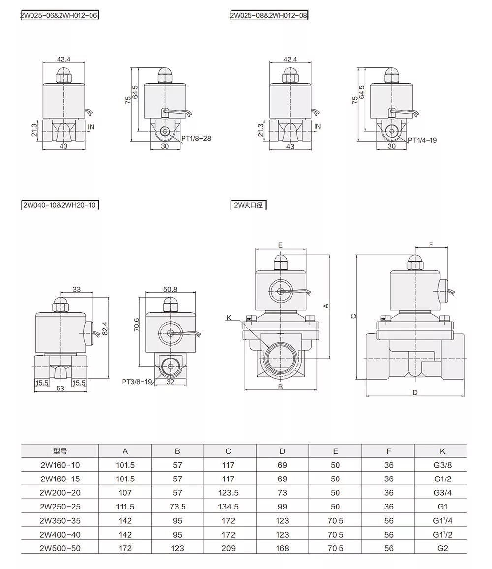 Den 2W 2-veis pneumatiske magnetventilen, normalt lukket magnetventil, har en direktevirkende design, bygget med et presisjonsmaskinert ventilhus, høyytelsesspole, stempel i rustfritt stål og pålitelige tetningskomponenter. Denne serien inkluderer to strømningstyper: en liten strømningsmodell for standardsystemer og en storstrømsmodell for væskekontroll med høy kapasitet.