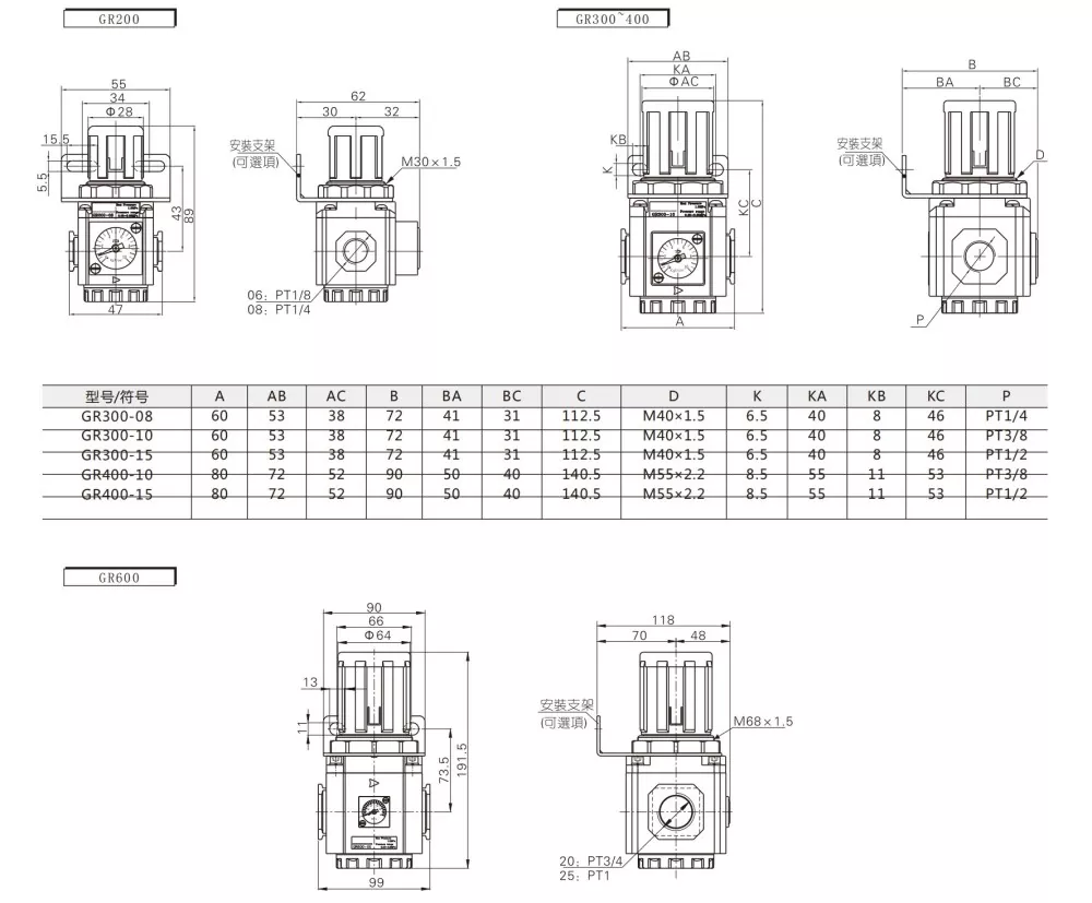 Airtac type GR trykkregulator Produktegenskaper: