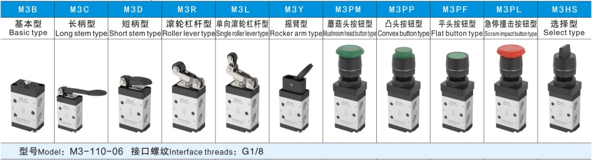 3. M3C, M3D, M3Y, M3PF, M3PM, M3PP og M3PLM3HS -serien er manuelt operert, med forskjellige strukturelle former for kontrollhoder for praktisk bruk under forskjellige forhold.