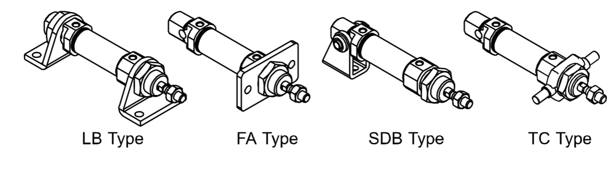 ·Ulike spesifikasjoner av sylindere og sylindermonteringstilbehør er tilgjengelige for kundevalg.