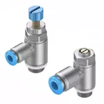 Disse er innløps- og eksosgassventiler, kjennetegnet ved hettemerkingene 'B' og 'OUT'. De kan brukes sammen: innløpsgassventilen justerer lufttilførselsstrømmen, mens eksosgassventilen styrer sylinderhastigheten for mer presis systemkontroll.