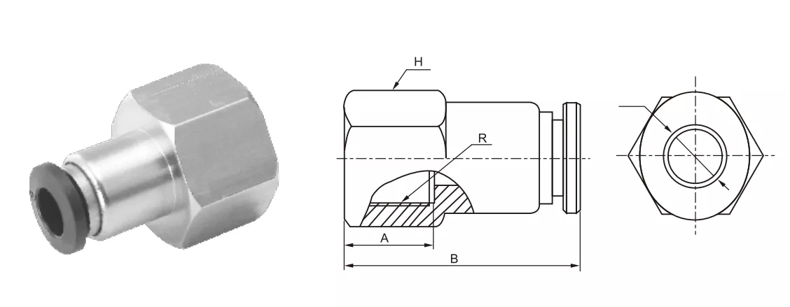 PCF kvinnelig rett trykk i rørmonterende generelle grunnleggende parametere