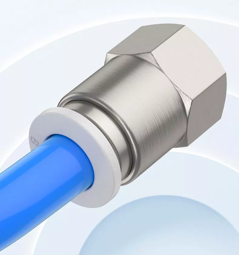 PCF kvinnelig rett trykk inn rørmontering og PC hanntråd rett trykk i rørmontering alle tilhører den grunnleggende typen push-in-montering. Men PCF er hunn R-tråd rett. Intern tråd brukes til å koble til eksterne gjengede komponenter, og innsettingsrøret er koblet til en hose. installert mer kompakt
