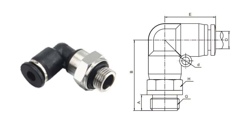 PL-G hannalbuen skyver inn rørmontering er en 90-graders albuekontakt og G-tråd ideell for bruk i trange rom eller hvor rørets omdirigering er påkrevd. Utstyrt med tetningsringer for å forhindre luft eller væskelekkasje.