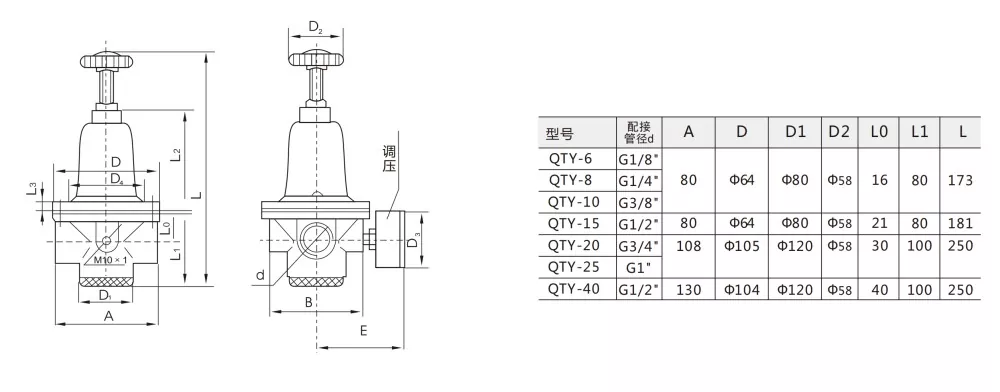 QTYH: Høytrykksregulator (High Pressure), i stand til å håndtere høyere innløpstrykk, egnet for høytrykksluftkilder eller spesielle industrielle applikasjoner.