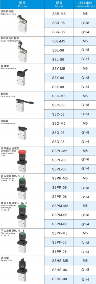 S3 Series Mekanisk knappkontrollventil 3 -veis installasjon og applikasjon: