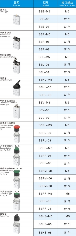 2. S3PF, S3PM, S3PP, S3PL, S3Y, S3HS, S3C, S3D -serien betjenes manuelt, med forskjellige strukturelle former for kontrollhoder for praktisk bruk under forskjellige forhold.