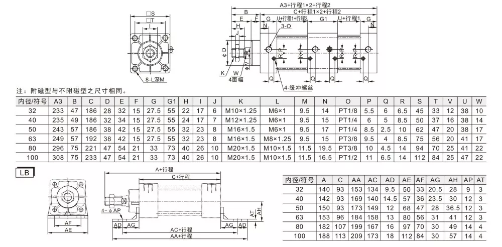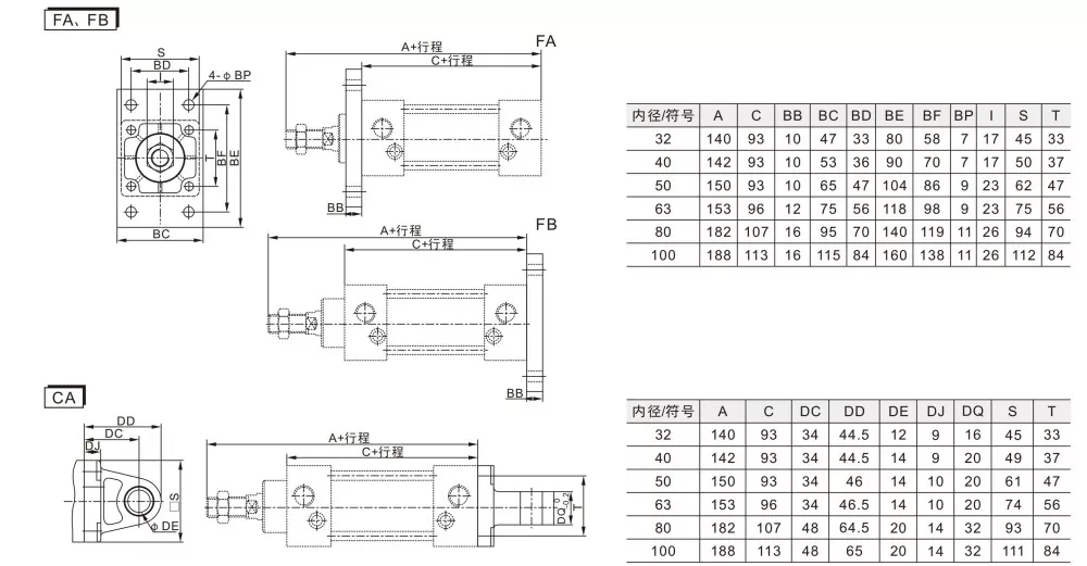 · Sylinder av typen strekkstang; front- og bakdekselet er koblet til aluminiumsrørkroppen med trekkstenger for høy pålitelighet.