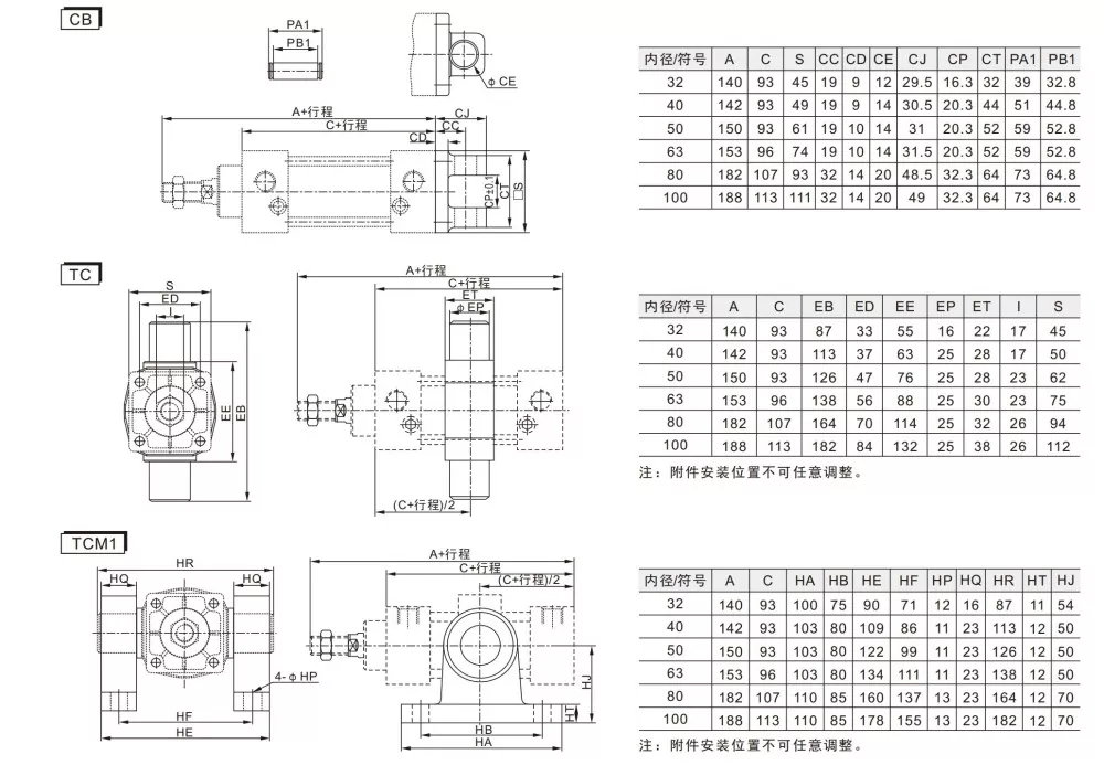 · Ulike sylinderspesifikasjoner og monteringstilbehør er tilgjengelige for kunder å velge mellom.