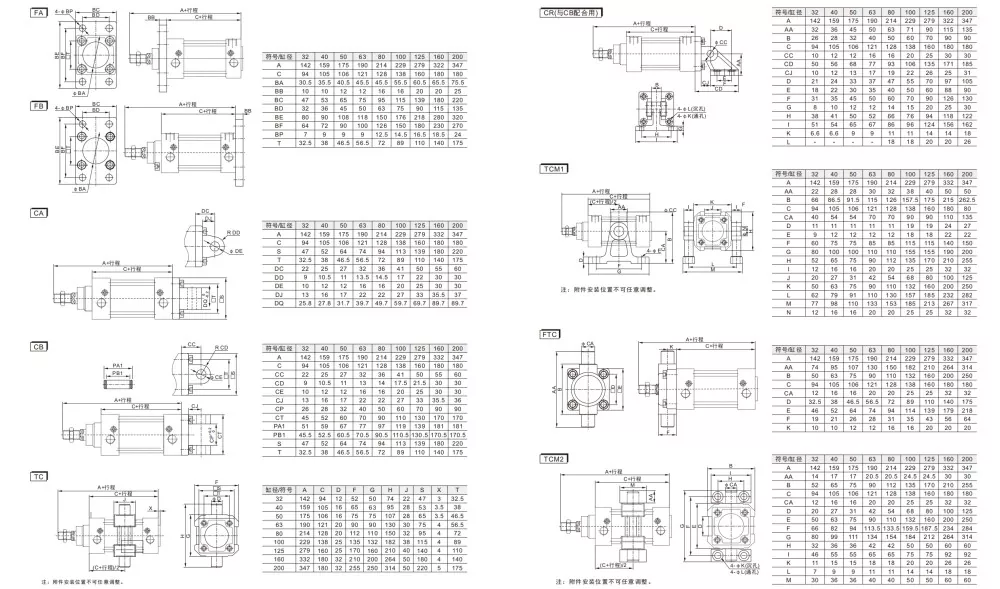 SU pneumatisk sylinder og SI luftsylinderKan ikke byttes, og tilbehør (CA /CB fotbraketter,FA-flenser,TC-M, leddhoder) er ikke kompatible